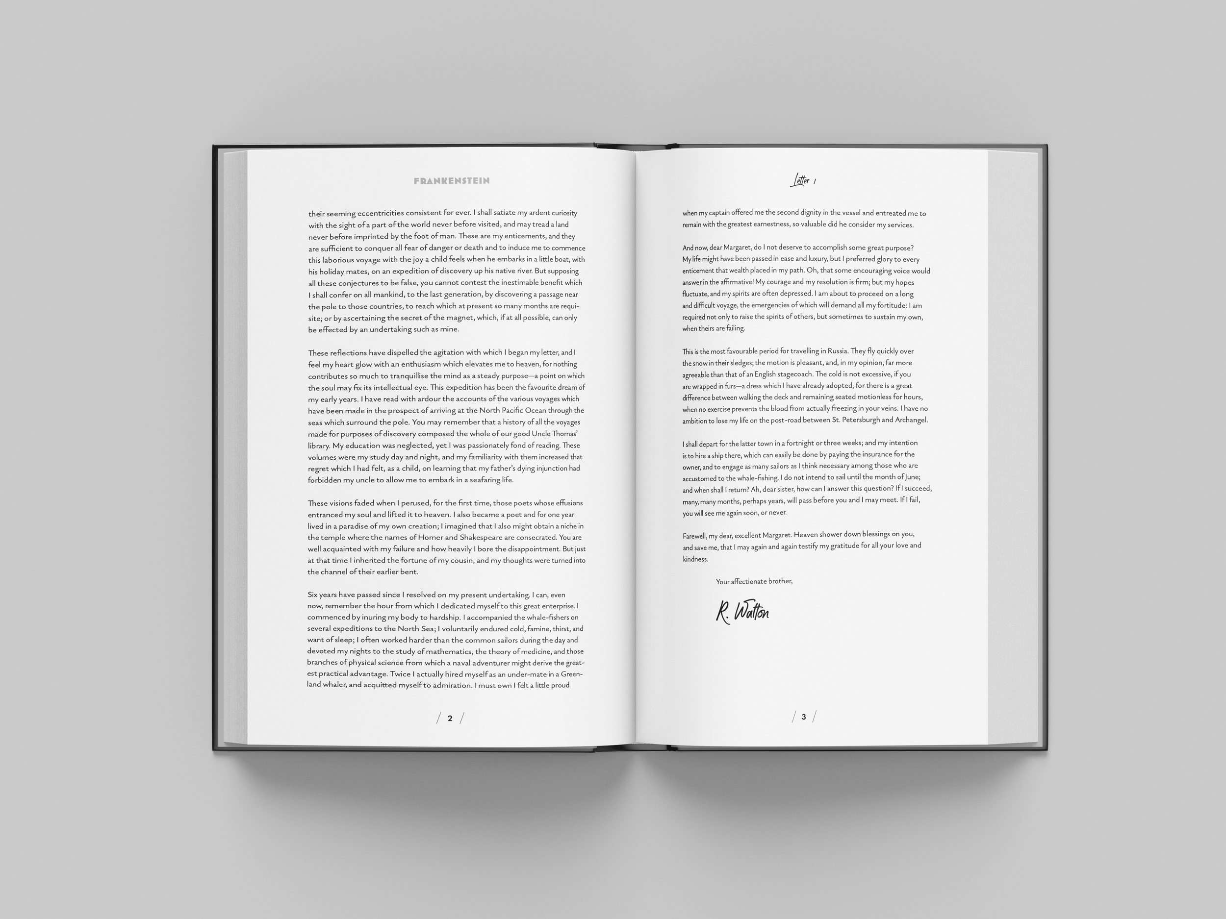 Tasked with designing the book jacket and interior of a classic book for re-publication, I chose Frankenstein; or, The Modern Prometheus, written by English author Mary Shelley in 1818. Frankenstein is considered to be the first true science fiction story.