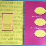 In between the work we drop some lemon wisdom about. The pages are perfed so they can become posters and the back page translated all the lemon wisdom into clings to use on windows or other surfaces. And of course our casual team was in the book too so we could share our smiling faces.
