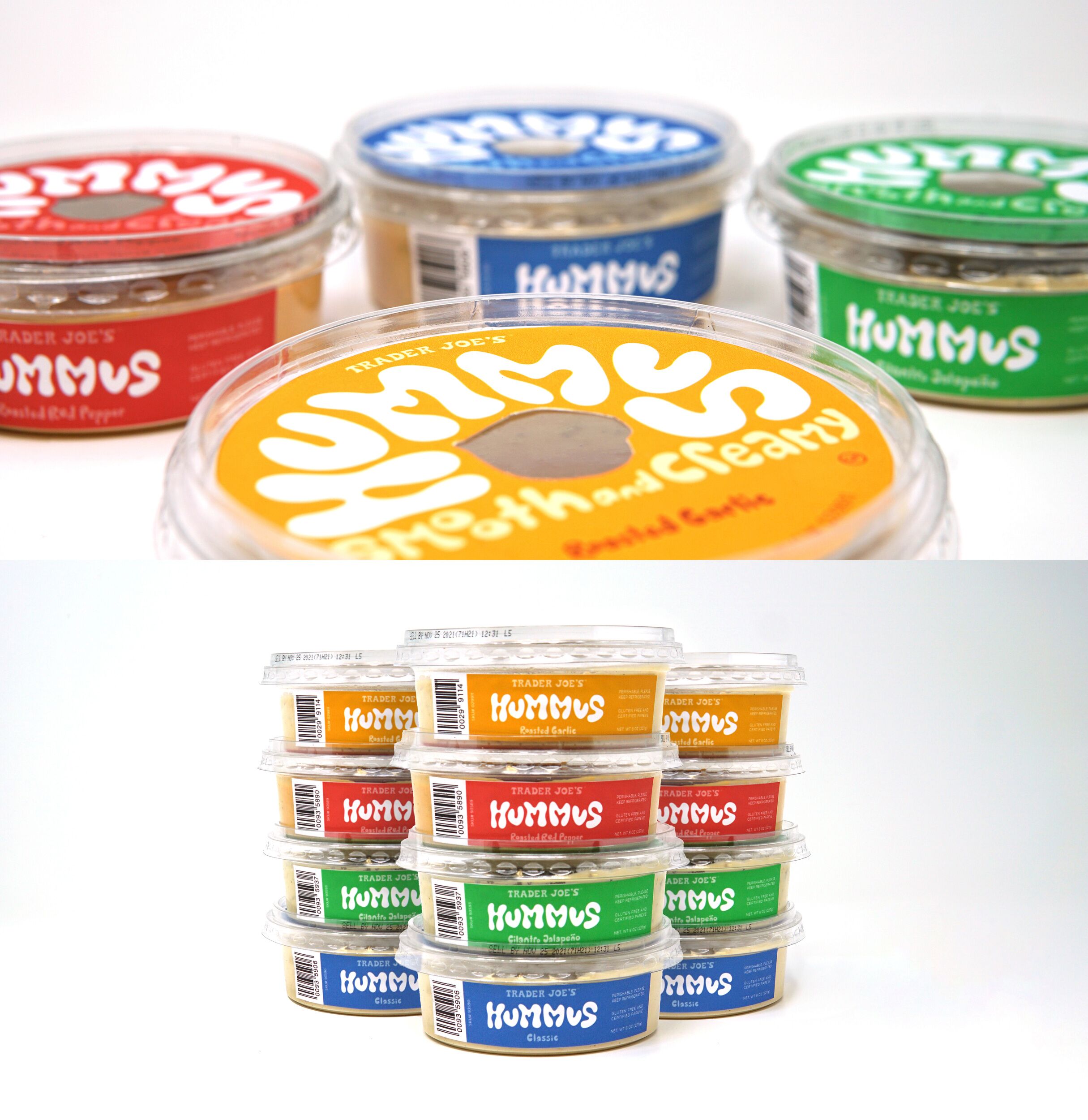 This project’s objective was to redesign an existing line of products that includes four variations. Naturally, as a current Trader Joe's employee, I chose the “Smooth and Creamy” Hummus line! The main idea behind my approach was to become more "on brand." What does that mean? Trader Joe’s does not try to be serious. They are fun, quirky, and “Your Neighborhood Grocery Store.” The old packaging was dated and did not really stand out in any way. In fact, it looks boring compared to the products being released by Trader Joe's nowadays. Usually, their product design uses display typography to define product lines, and the current “Greek-style” lettering on the hummus is easy to skip over while looking it at the shelf.